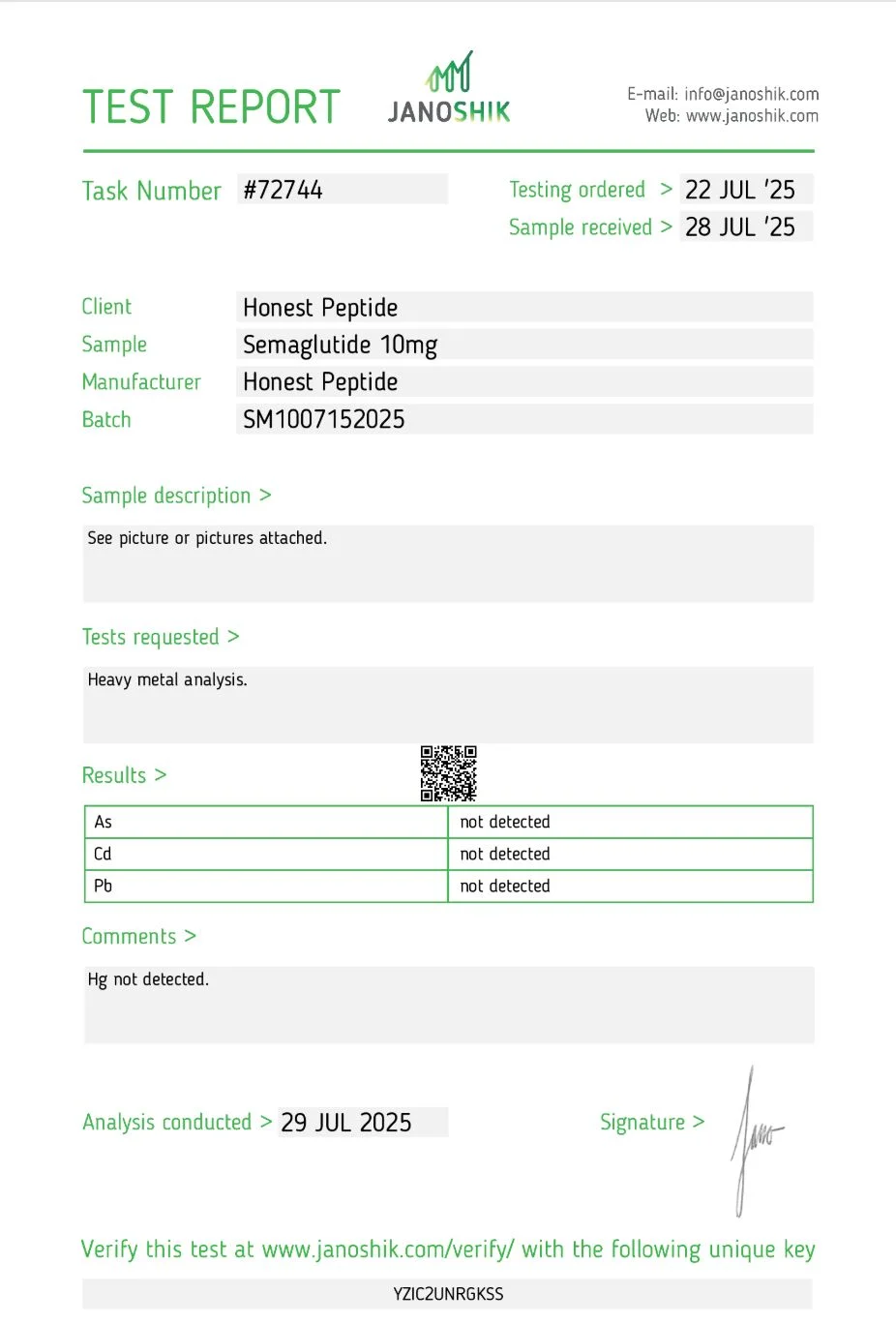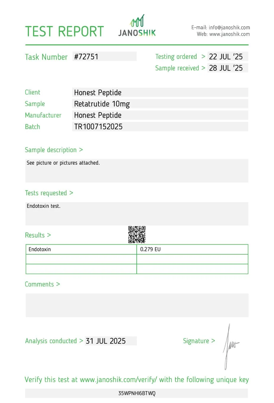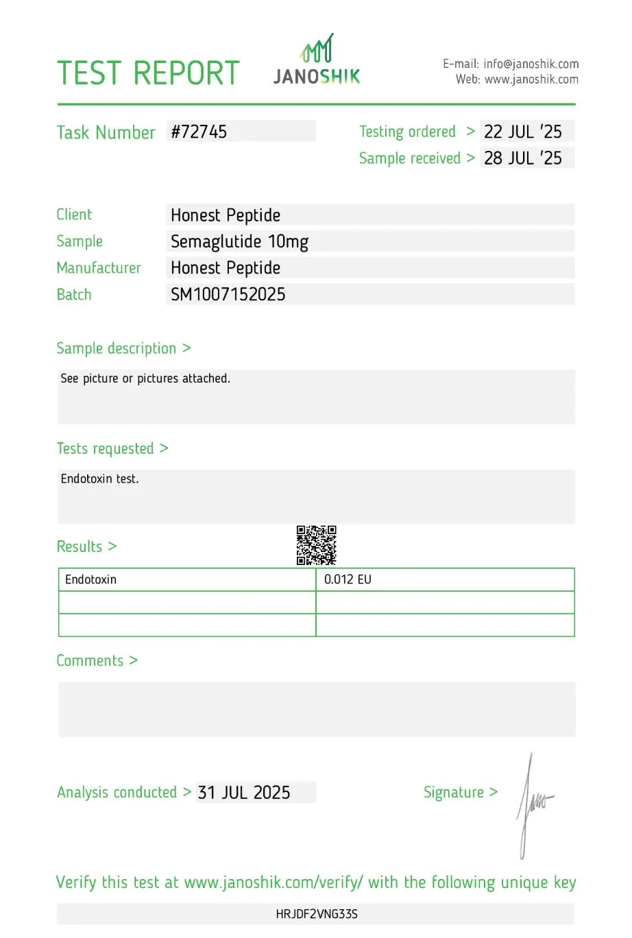 Why Honest?   99%+ Purity with 3rd party testing 10% off first order  Volume Discounts Fast & Free Shipping Refund Guarantee 24/7 Customer Service 99%+ Purity with 3rd party testing