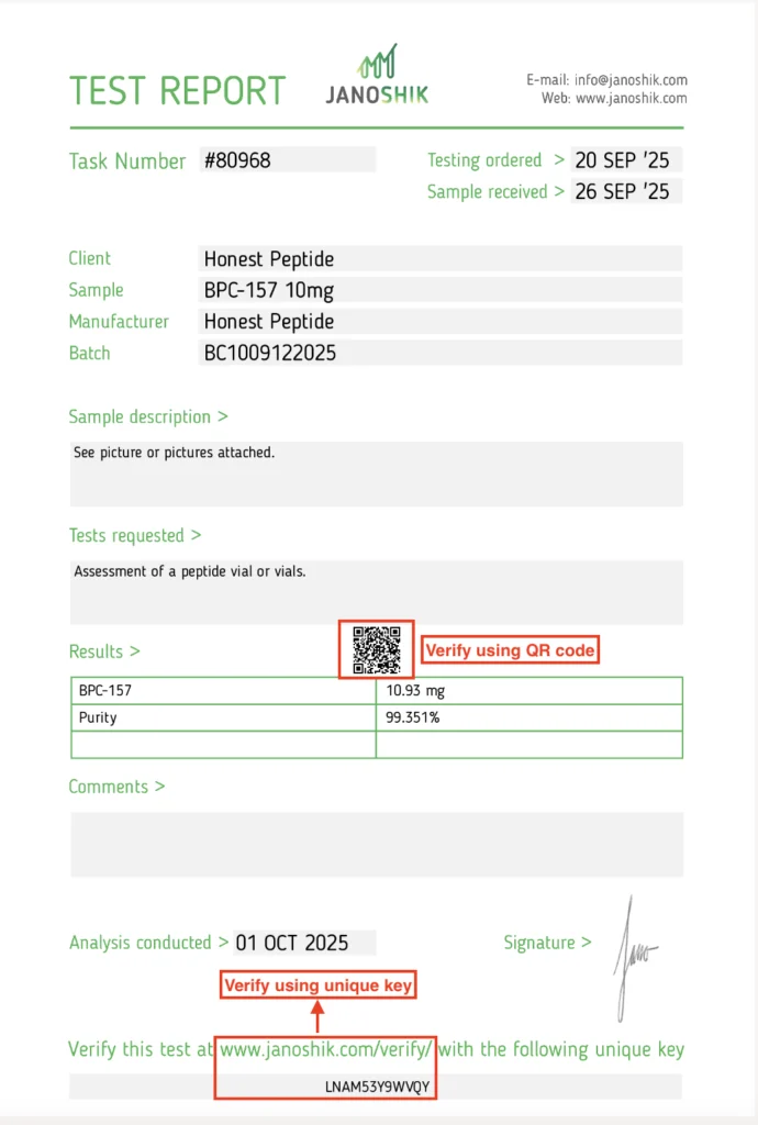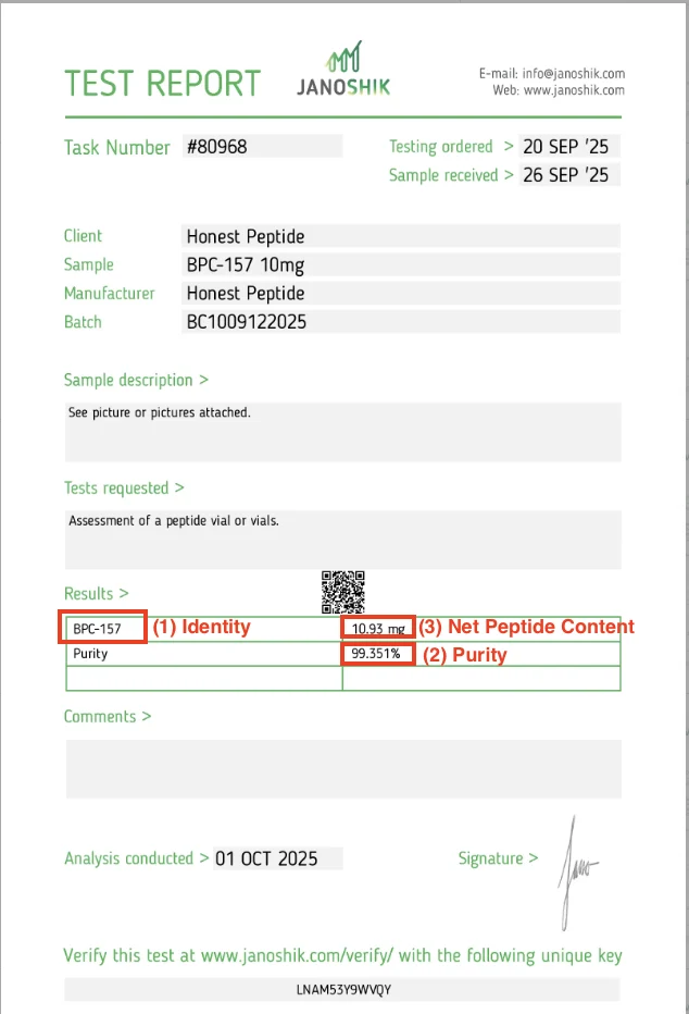 Credible suppliers use independent, third-party laboratories to generate COAs. Third-party testing eliminates conflict of interest and gives the researcher unbiased, empirical data—not marketing claims.