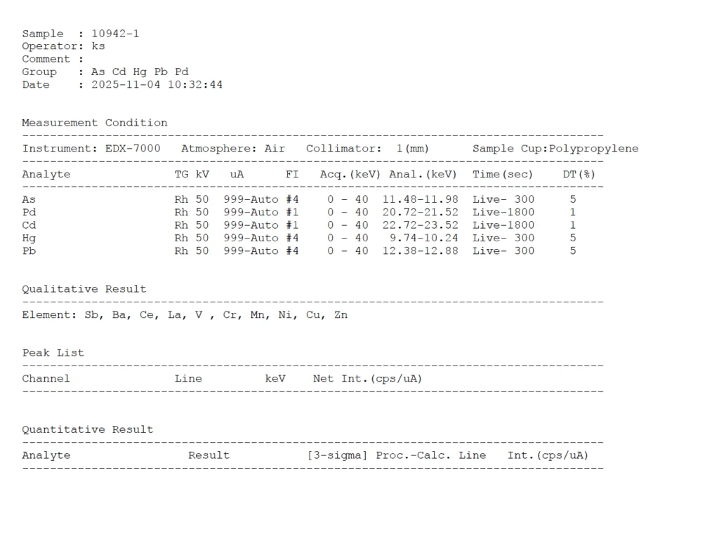 The test output is typically delivered as a binary detected or not detected, but a legitimate tester should also be able to produce metal-by-metal quantitative detail upon request.